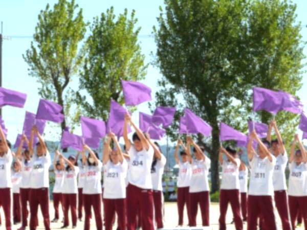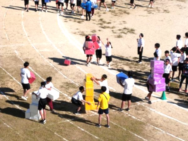 午前は、個人種目、団アピール、全員リレーが行われました。午後は、団対抗種目として「台風の目」「ハムスター競争」「満水競争」「宅配便リレー」で盛り上がり、締めの「選抜リレー」が行われ、どの競技も各団一丸となって声援が送られていました。