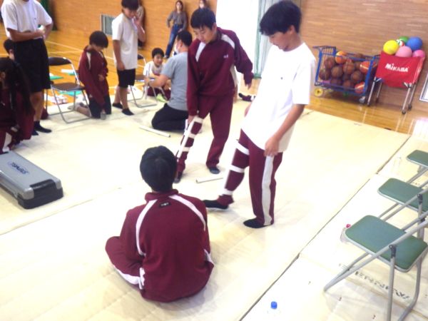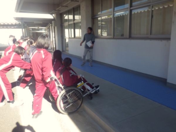 1年生が総合的な学習の時間で「福祉体験学習」を行いました。