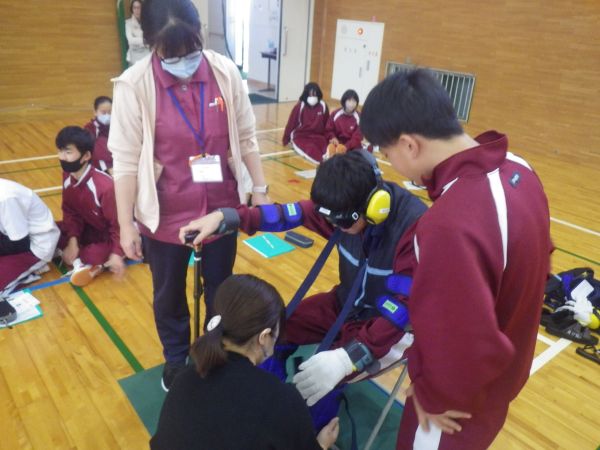 「疾患疑似体験」「高齢者疑似体験」「車イス体験」「一次救命体験」「感染対策体験」「コミュニケーションスキル体験」「ボディメカニクス体験」「移乗介助体験」の8つコースに分かれ、みんな熱心に取り組みました。相手の立場に立つことで、気づき、考え、行動する貴重な学習の機会となりました。